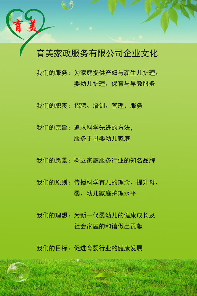育美家政 專(zhuān)于婦嬰 來(lái)自華東 服務(wù)鄭州/育美家政服務(wù)有限公司是一家員工制管理(非中介)的公司。 主營(yíng)業(yè)務(wù):產(chǎn)婦護(hù)理和新生兒護(hù)理/0-3歲嬰幼兒護(hù)理/催乳按摩服務(wù)/月嫂和育嬰師培訓(xùn)/家庭育兒入戶指導(dǎo)